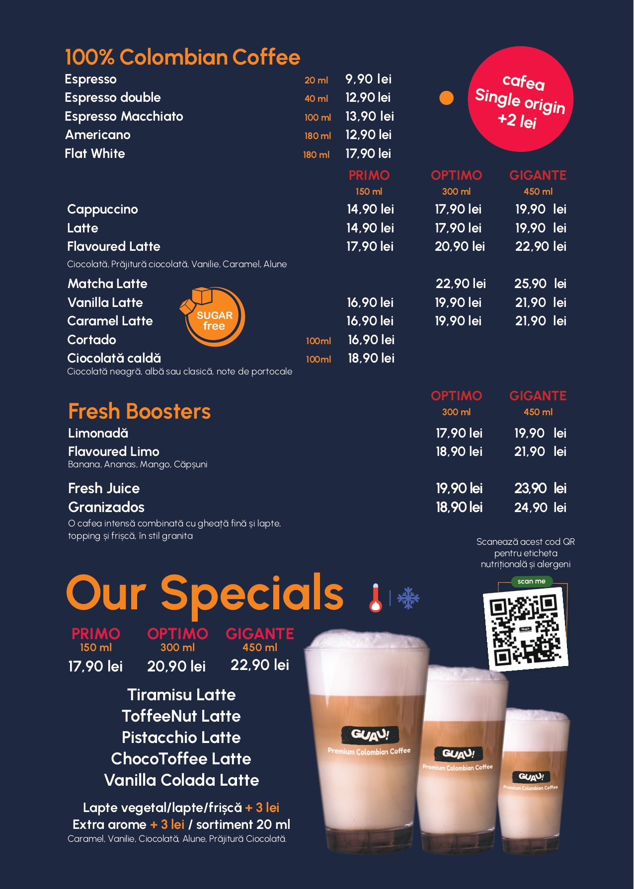 Vezi lista de alergeni și valorile nutriționale cafenea Guau