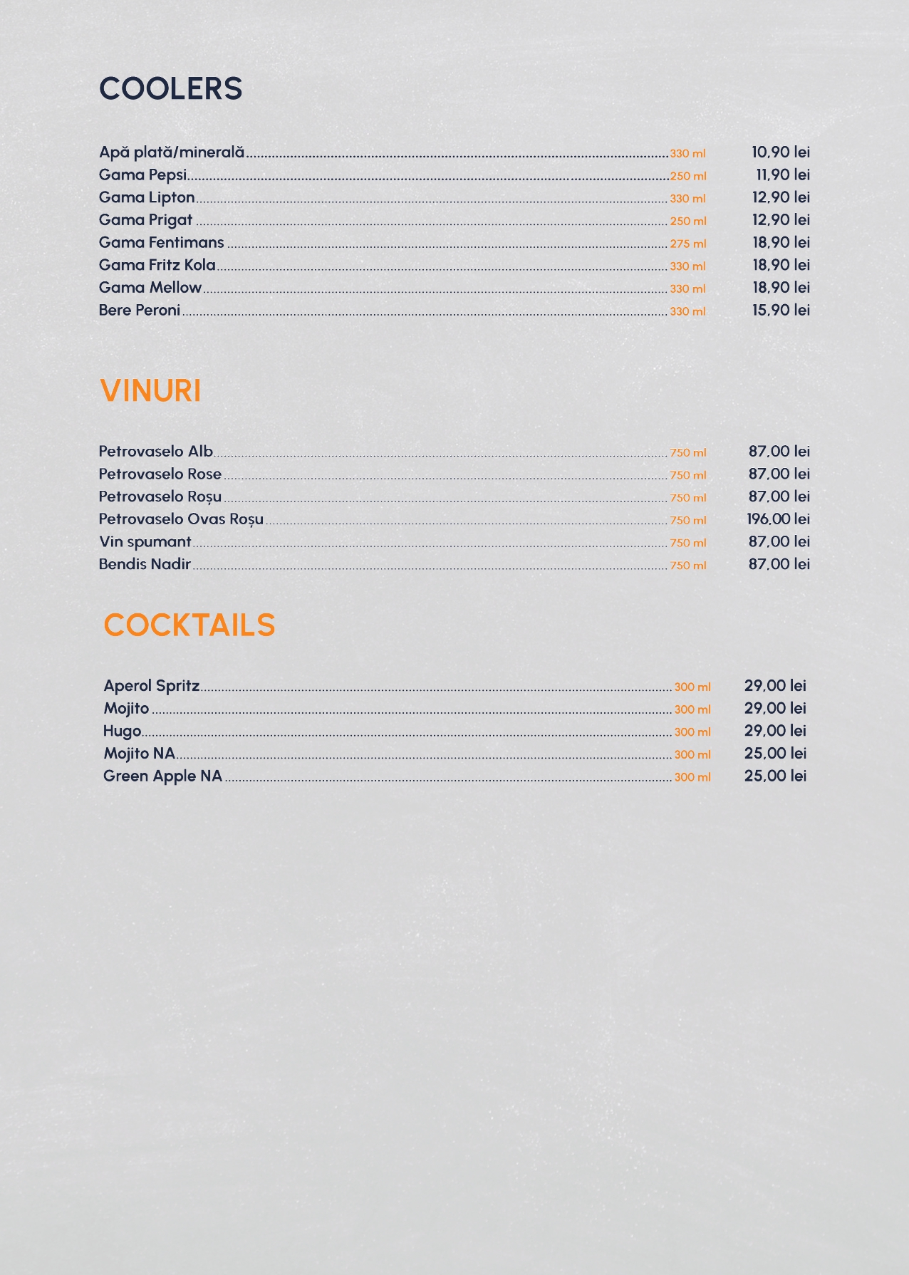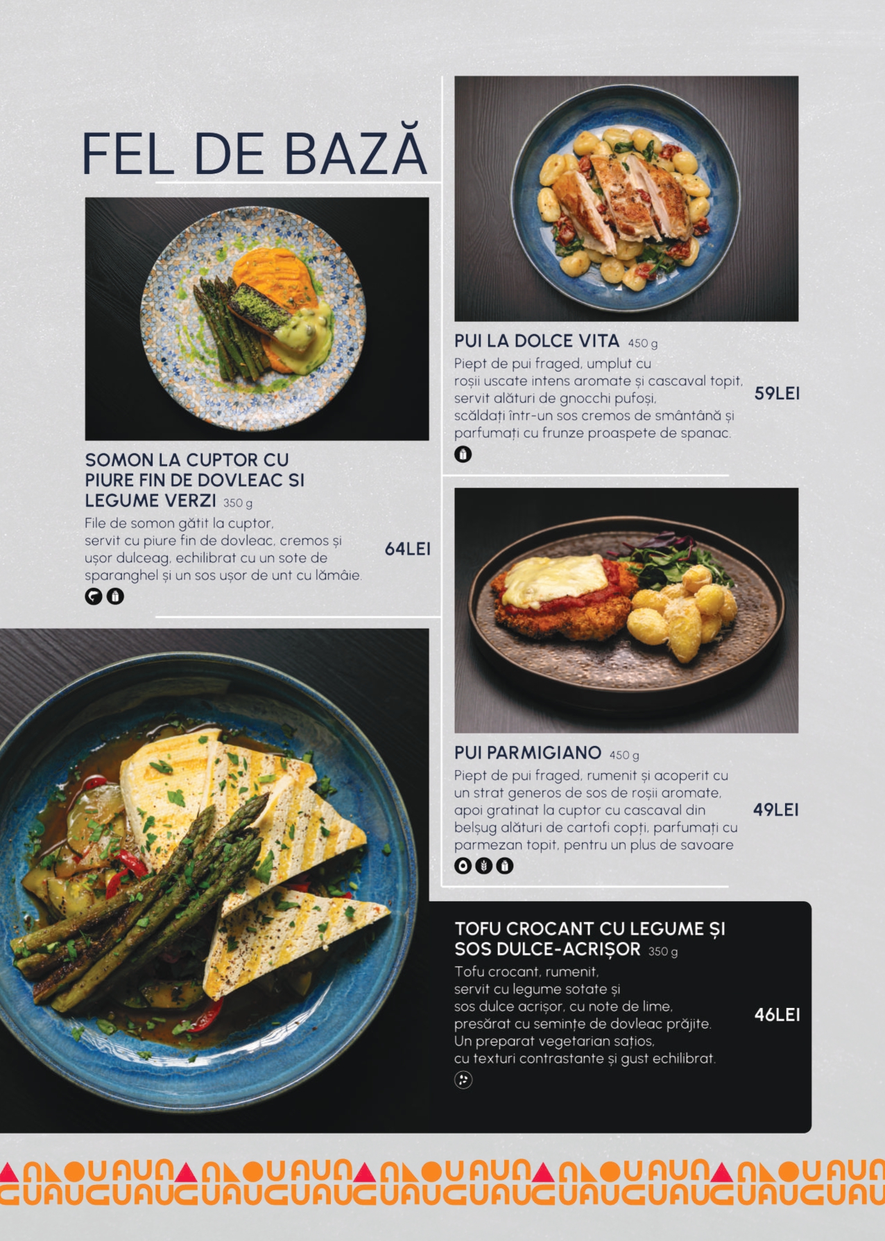 La baza meniului nostru stă ideea de comfort food, care merge perfect, indiferent că iei o pauză de la birou sau ai o întâlnire de afaceri relaxată,